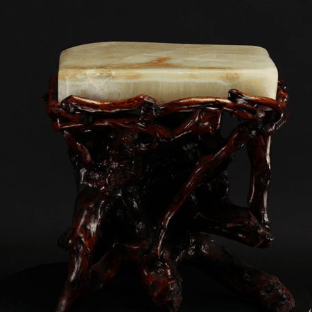 Rare Brazilian Ice Jade with the graceful twists of eucalyptus roots. The natural jade energy, collected from nature, is a natural work of art. It can be used as an art decoration or stool.